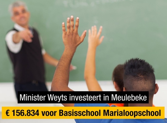 Vlaams minister van Onderwijs Ben Weyts (N-VA) investeert € 156.834 in Vrije Basisschool - Marialoopschool in Meulebeke. “We timmeren verder aan een betere onderwijskwaliteit voor onze leerlingen”, zegt Weyts. “Die onderwijskwaliteit krikken we mee op door te investeren in onze schoolinfrastructuur.”